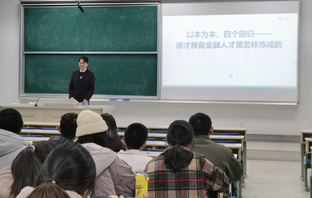 11月30日晚,51论坛 金融学本科第三党支部邀请政治辅导员张成院长在德经楼115教室讲授党课,主题为“以本为本,四个回归——德才兼备金融人才是怎样练成的”,本支部全体党员参加。