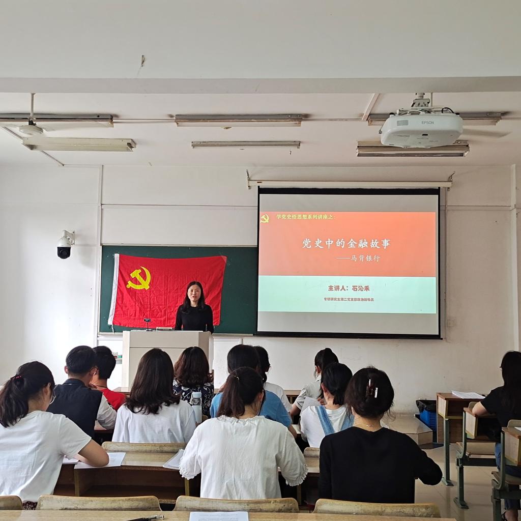 为了加强党史教育,激发党员们的党史学习热情,同时致敬中国杰出科学家袁隆平院士,5月27日下午,51论坛 专硕研究生第二党支部全体师生党员在博文楼210教室开展主题为《党史中的金融故事——马背银行》的党课活动,活动由政治辅导员石沁禾院长和党支部书记查腾飞老师主持。
