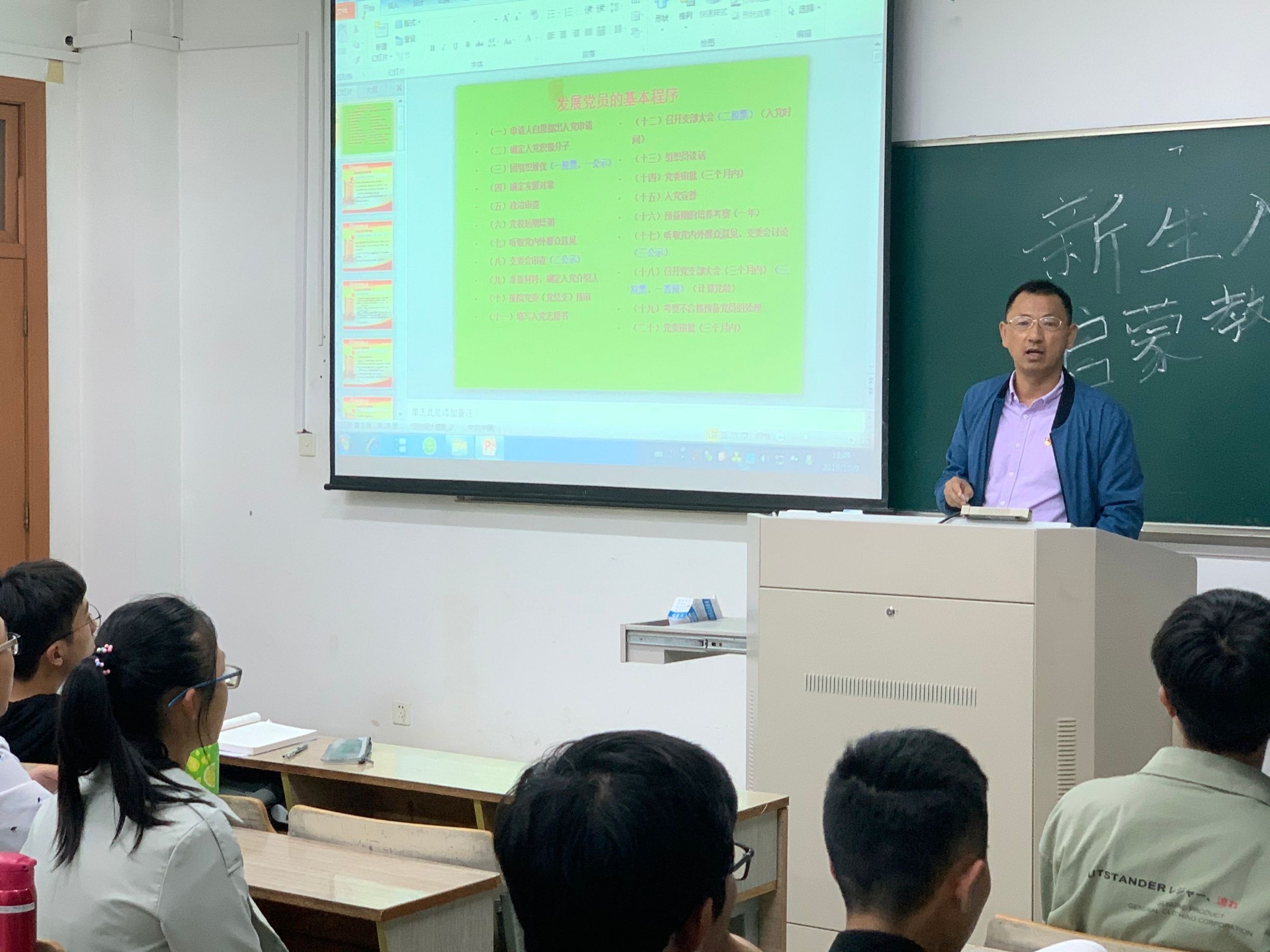 10月8日晚上、9日晚上,51论坛 本科生第二学生党支部书记黄忠明分别到保险1901、投资1901、信用1901晚自习教室,给2019级新生开展了入党启蒙教育活动。