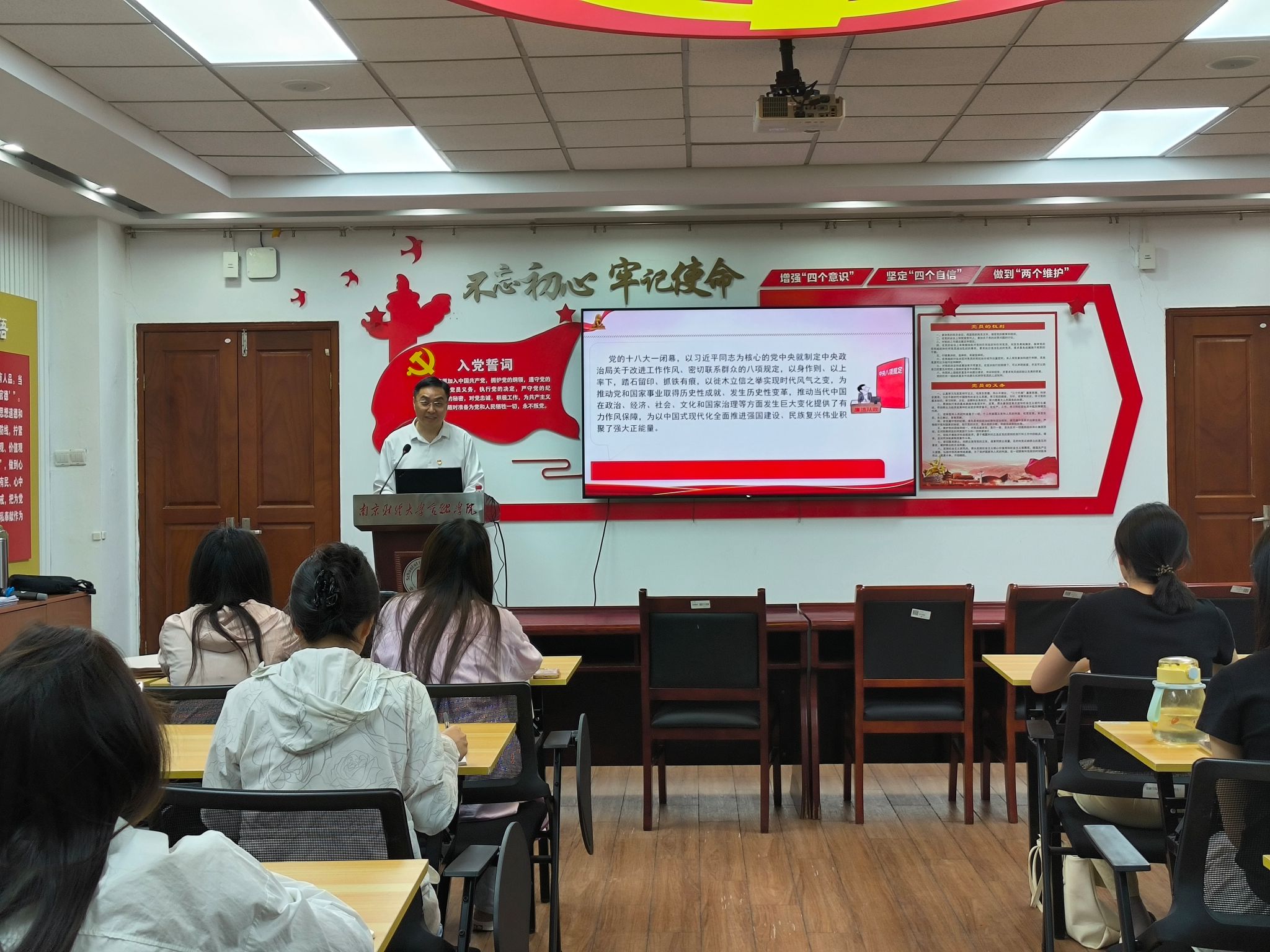 朱军部长结合实际案例,深入浅出地阐述了社会服务对于研究生成长和社会发展的重要性。在党课中,朱军部长强调,社会主义核心价值观是当代中国精神的集中体现,凝结着全体人民共同的价值追求,对于研究生党员的成长有着极为重要的引领作用,希望研究生党员作为学生群体中的先进代表,应将个人成长与集体发展高度结合,将社会主义核心价值观融入到日常的学习和生活中,鼓励研究生党员们利用专业优势,开展各类志愿服务,主动服务社会,为社会发展贡献智慧和力量。最后,朱军部长也指出,加强纪律建设是我们党的光荣传统和独特优势,希望研究生党员严格遵守各项纪律规定,时刻绷紧纪律规矩这根弦,以优良作风干事创业、担当作为,形成抓作风促工作、抓工作强作风的良性循环。