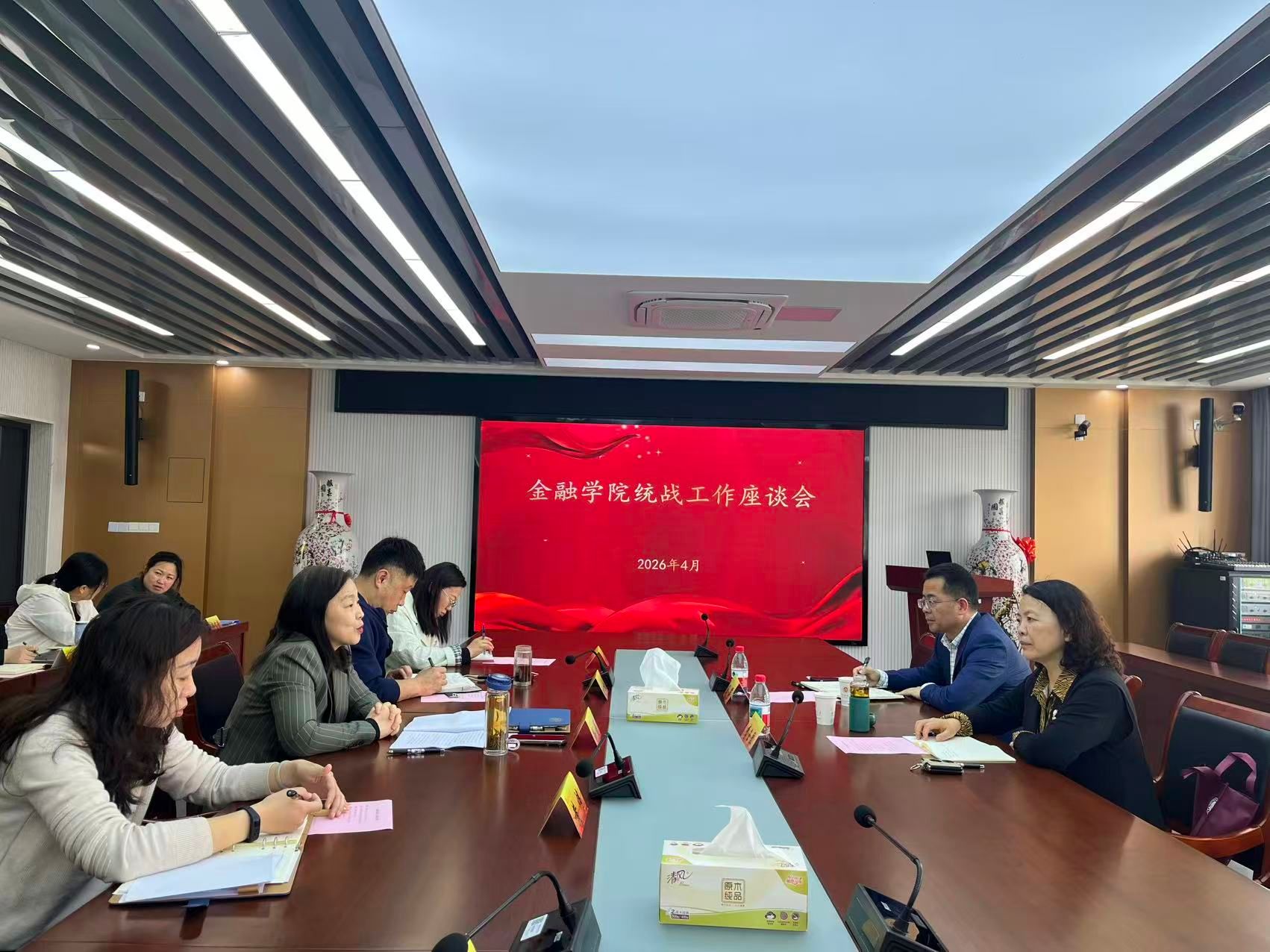 最后,李玉琴部长作总结讲话。她充分肯定金融学院统战工作成效,强调要持续强化政治引领,压实育人主体责任,健全常态化排查研判机制。立足金融专业特色抓实统战思政融合,严守意识形态安全底线。多方协同联动,细化精细化育人服务,以高质量统战工作助力学校各项工作提质增效。