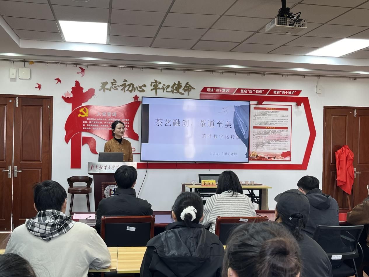 活动现场,国家高级茶艺师刘晓月老师向同学们讲解了我国茶文化和茶产业数字化发展的趋势,使同学们了解到古人的饮茶习惯和茶文化与数字经济之间的关系。随后,大家围绕茶叶数字化转型展开热烈讨论,大家纷纷认为,在信息时代,金融创新已成为传统产业发展的新引擎,茶产业对数字技术的运用也必须从工具级提升到战略级,传统产业要深度拥抱数字化,重塑产业引擎,才能让传统产业焕发出新的生机和活力。
