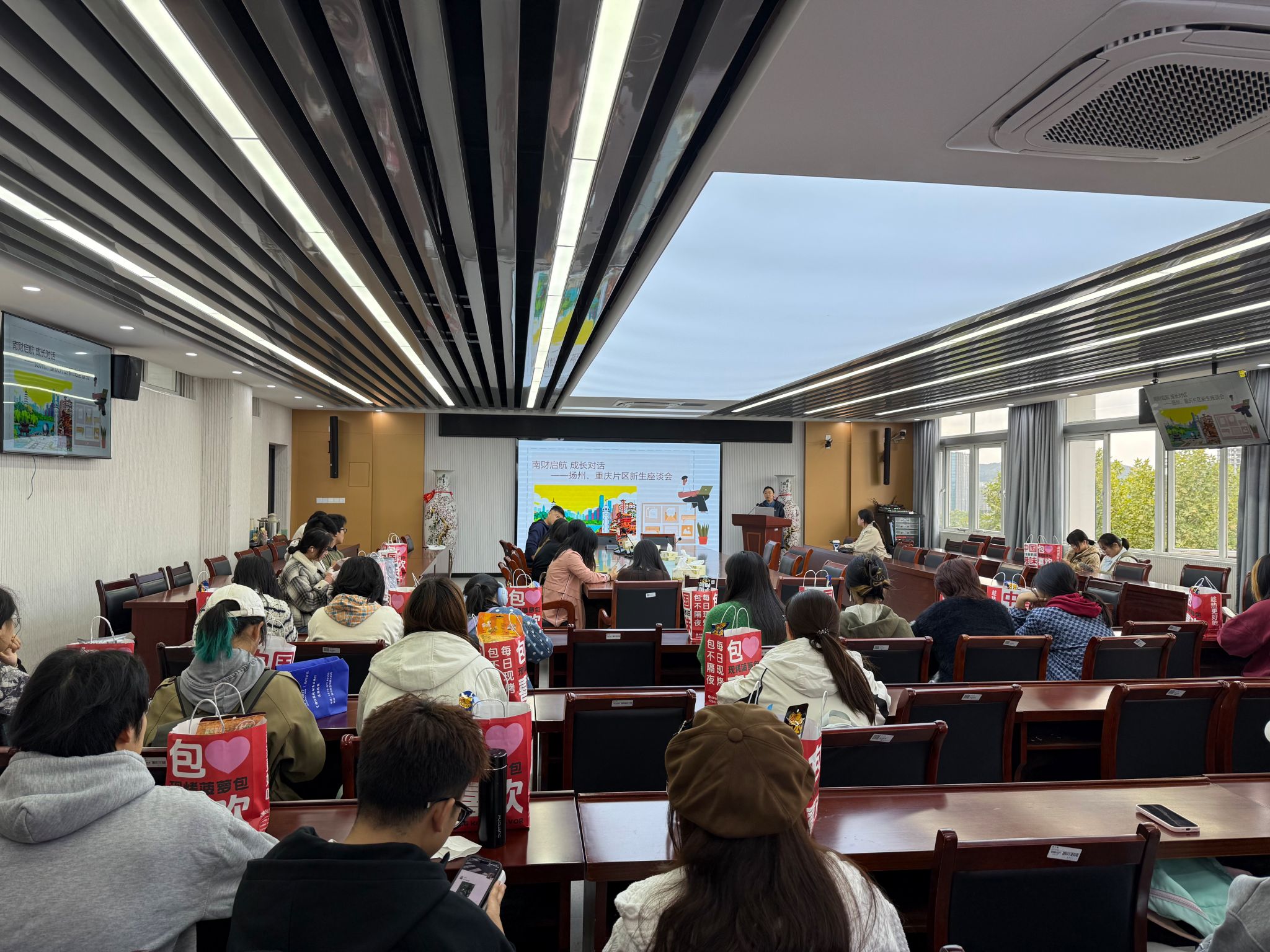 10 月 20 日中午,在德经楼 508 会议室召开扬州、重庆片区25级新生见面会。本次活动以 “南财启航 成长对话” 为主题,旨在凝聚乡情、赋能新生成长,鼓励学子积极展现南财风采,成为学校形象的优秀“合伙人”。参与本次见面会的有51论坛 党委副书记张士青、各招生片区负责老师和80名新生代表,会议由学工办黄炜老师主持。