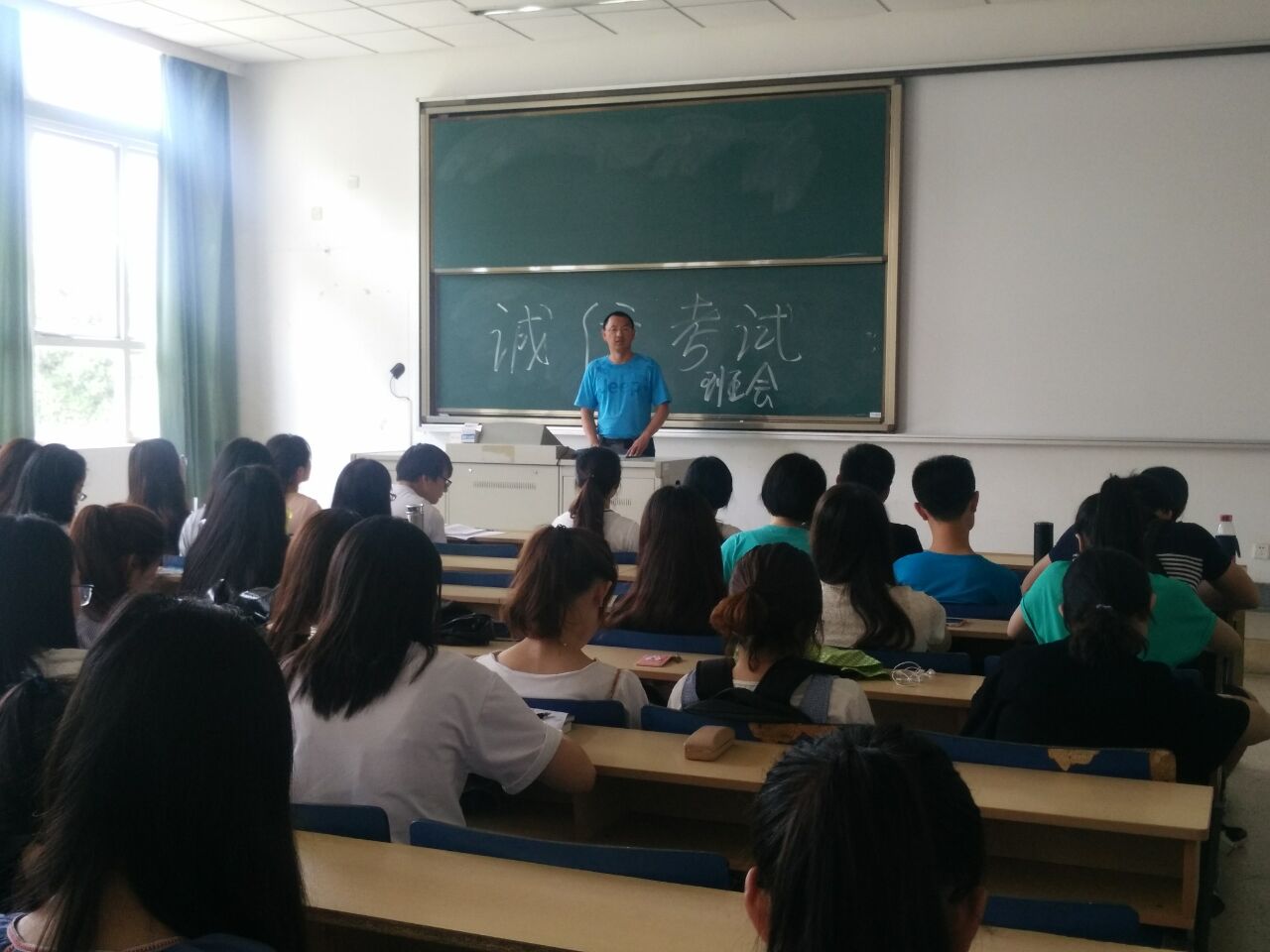 为进一步严肃考风考纪,鼓励督促大学生积极复习迎考,充分展示51论坛 大学生良好的班风学风,杜绝各种考试违纪作弊行为,辅导员黄忠明老师于6月14-15日JB-202、Z1-117教室,组织“严肃考风考纪,争做诚信考生”的主题班会。