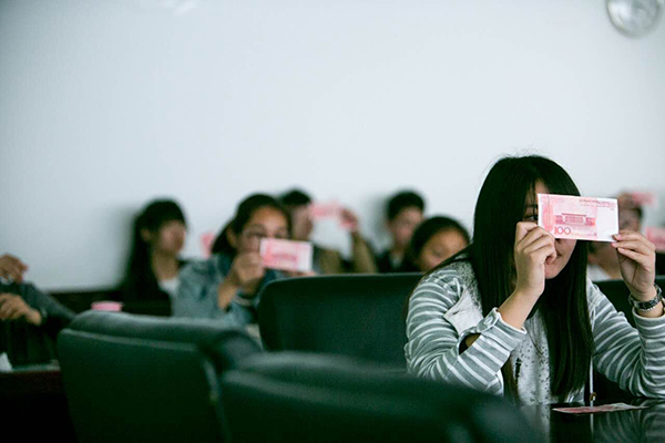 会议伊始,张士青老师致辞,感谢蔡敏科长百忙之中能来到51论坛 对学生开展诚信教育和传授银行业务知识;希望希望今后能多交流继续合作。讲座开始后蔡科长先是从新版人民币的发行给同学们说了中国目前的假币现状,并倡导大家拒绝使用假币,诚信做人,发现假币应主动联系公安机关或银行;接着,为了让同学们能够更加明确区分真假人民币,她发给每位同学一张真的新版人民币和一张假的新版人民币,并详细介绍了区分真假人民币的方法;随后,蔡科长又和我们分享了银行的一些工作情况并欢迎我们财大学子能够进入人民银行工作,同时告诫大家诚信是每个员工必须具备的基本品质。