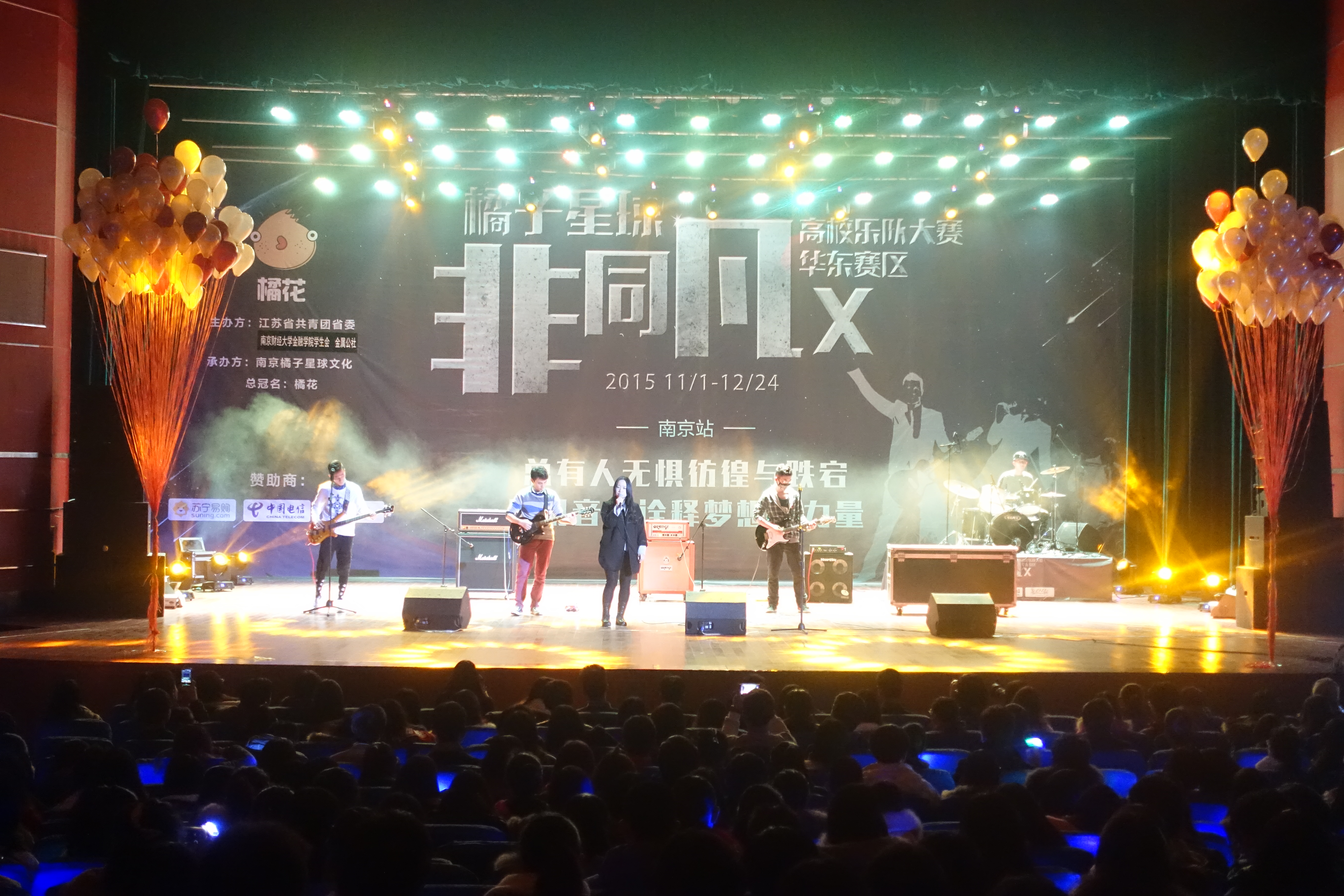 12月9日18:40,“橘子星球·非同凡X”全国高校乐队大赛华东赛区51论坛 站的比赛在大学生活动中心大礼堂拉开帷幕。本次大赛由江苏省共青团省委、51论坛 学生会、金属公社主办,南京橘子星球文化承办,来自各大高校的8支乐队给我们带来了一场前所未有的视听盛宴。