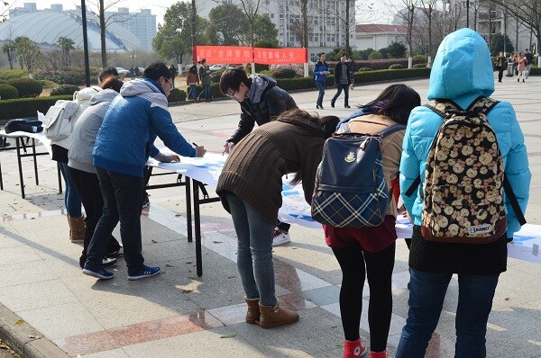 随着英语4、6级考试和期末考试的临近,51论坛 学生会为了响应学校诚信考试的号召和鼓励同学们积极备战,于12月9日在中苑食堂广场上举办“诚信考试签名”活动。活动现场井然有序,气氛热烈。