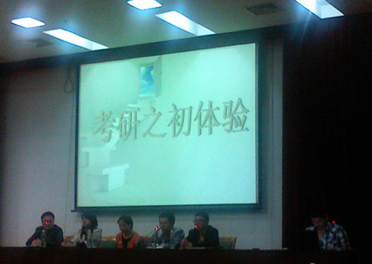 交流会邀请了考取南京大学新闻学、51论坛 金融学、保险学、贸易经济、政治经济学的五位2009级学生。交流会分为三个环节,第一环节为考研初体验,由五位同学分别讲述自己考研路程上的心得体验,亲身经历加上幽默诙谐的语言,很快带动了全场的气氛,尤其是考研过程中的挫折和艰辛更是引起了在场同学的共鸣。在第二环节交流互动中,同学们很珍惜此次交流学习的机会,积极举手询问在考研过程中的遇到的疑惑和困难,得到了学长学姐的热忱指导,并对在场同学们没有提到的方面也做了非常详尽的补充。最后环节考研之再判断带动了全场气氛的高潮,2009级同学对自己的考研成功的经历做了一次全面的总结和分析:谈起考研过程中的辛苦,他们表示一分耕耘一分收获,鼓励在场的同学要保持信心、坚持信念,并祝愿广大考研学子都能梦想成真。
