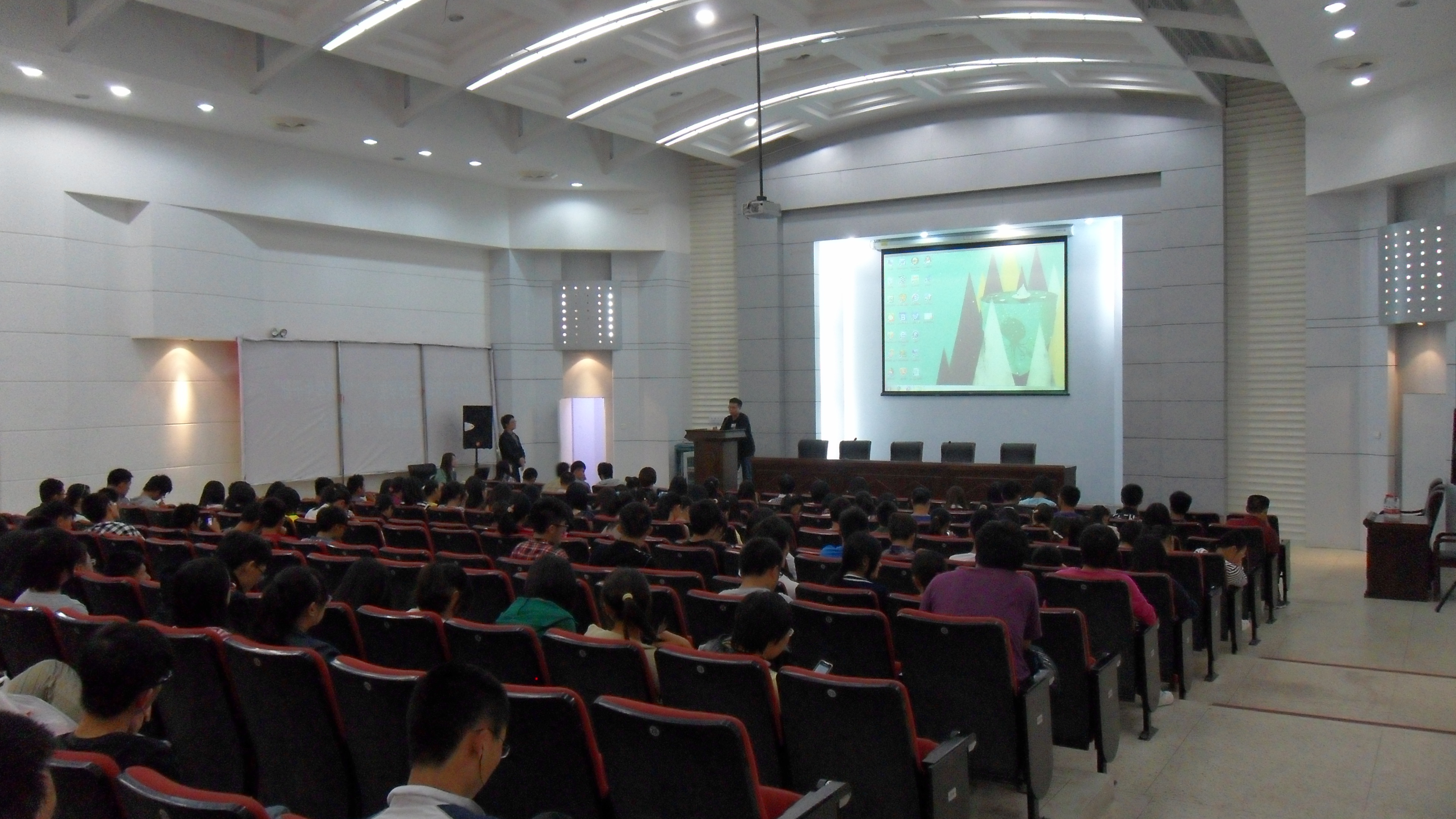 首先,团总支副书记顾庆鹏以一贯风趣幽默的演讲风格为本次报告拉开了序幕。对挑战杯简短精炼的介绍既吸引了在场听众的兴趣,又使听众对挑战杯有了一个总的认知。在他一句“抛砖引玉”的自谦后,校科协挑战杯褚益民对挑战杯进行了系统式的详细介绍,并且向观众阐述了挑战杯的“科学,先进,现实意义”的课题宗旨。