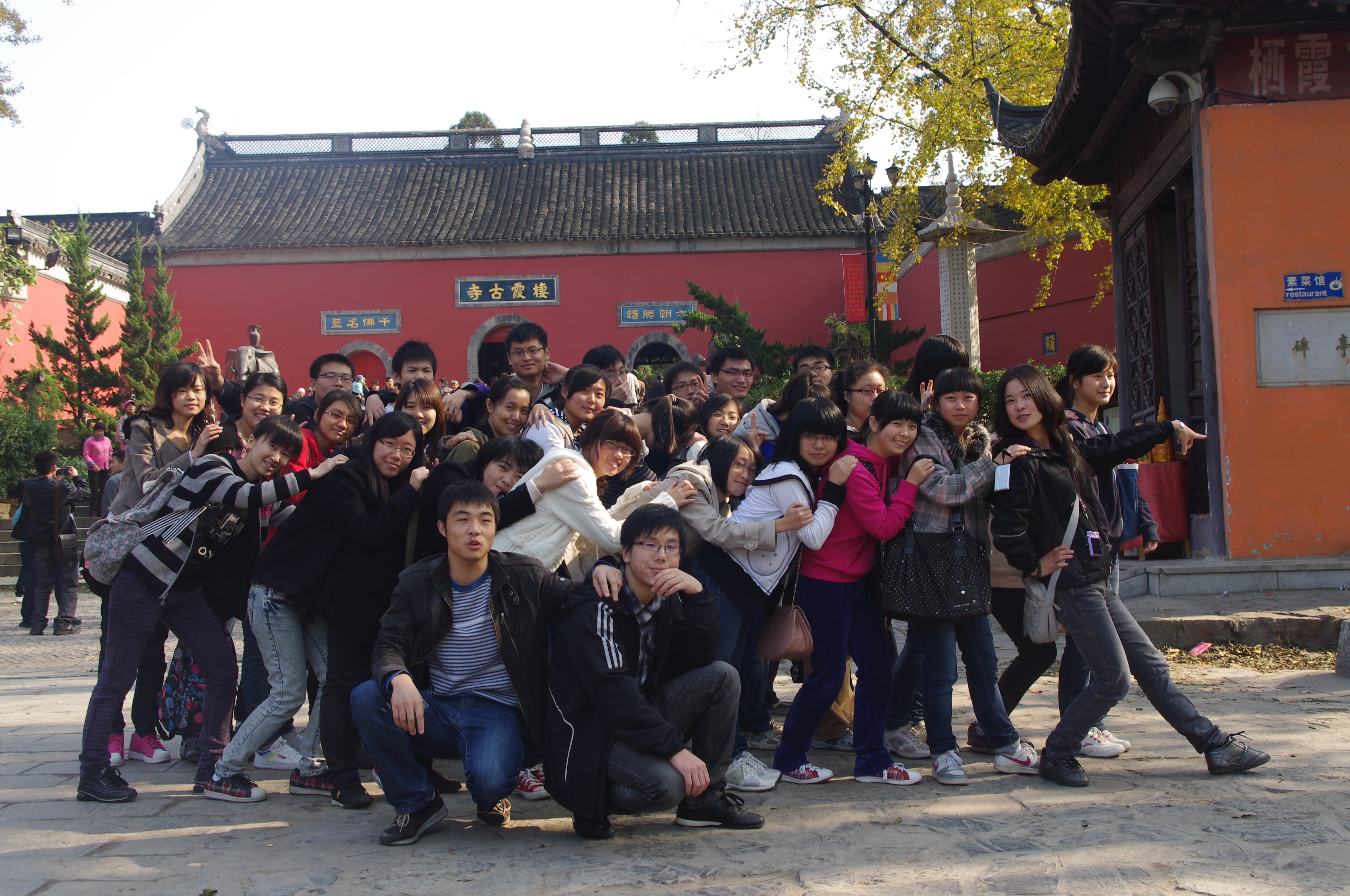 2011年11月20日,51论坛 保险1001携手保险1002班在南京栖霞山共同举办了以“青春的印记”为主题的团日活动。迎着晨风,两个班同学乘着车来到了栖霞山,欢声笑语中我们开始了登山之旅。几个小时的登山之行,更加增进了两个班的友谊,大家相识有一年多,能够如此亲近的出行的确难得,因此我们都格外珍惜这次户外之旅。在登山的路途中大家互帮互助,自发组织了各种各样的活动,体验着青春赋予我们的活力,寻找着青春的印记。