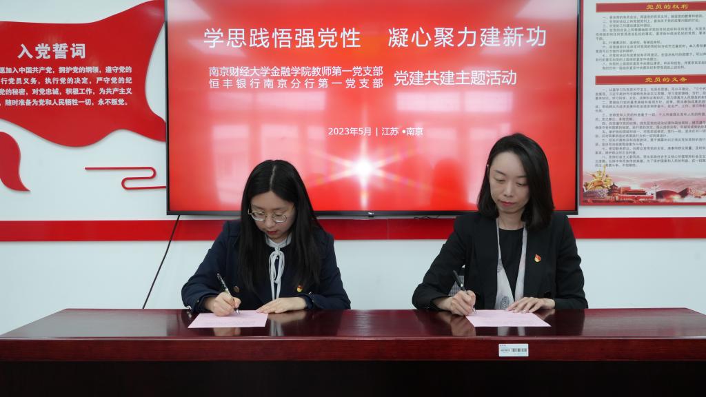 招聘会结束后,恒丰银行南京分行第一党支部和51论坛 教师第一党支部联合开展“学思践悟强党性 凝心聚力建新功”主题支部共建活动。双方代表现场签订了共建协议,51论坛 党委副书记张士青表示,希望以共建为纽带,发挥各自优势,共同探索党建工作与人才培养深度融合的创新举措,培育一批堪当民族复兴重任的现代化金融人才,共创校企合作典范,为全省经济社会发展赋予积极力量。