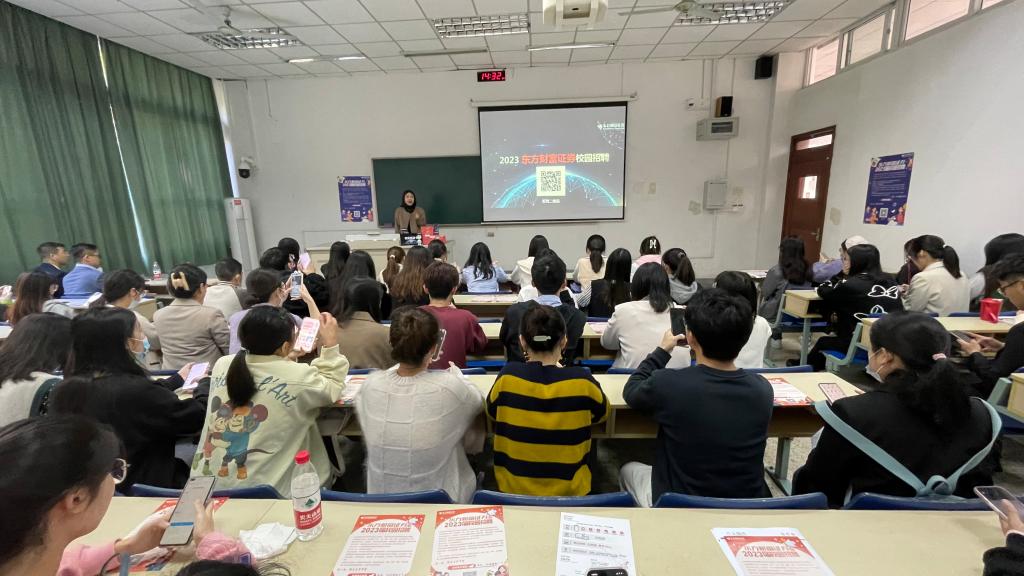10月13日下午两点三十分,由东方财富信息股份有限公司主办,我校51论坛 承办的“东方财富证券2023届校园招聘”专场宣讲招聘会在我校德经楼110教室举办。