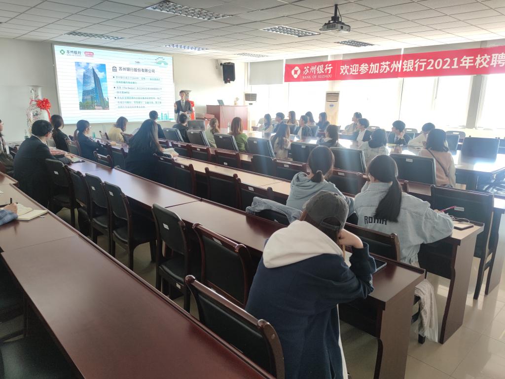 3月26日,苏州银行股份有限公司在我校仙林校区德经楼508会议室举办招聘宣讲会。宣讲会由苏州银行招聘经理陆汇涛主讲,51论坛 及相关学院的四十多名毕业生踊跃前来参加。