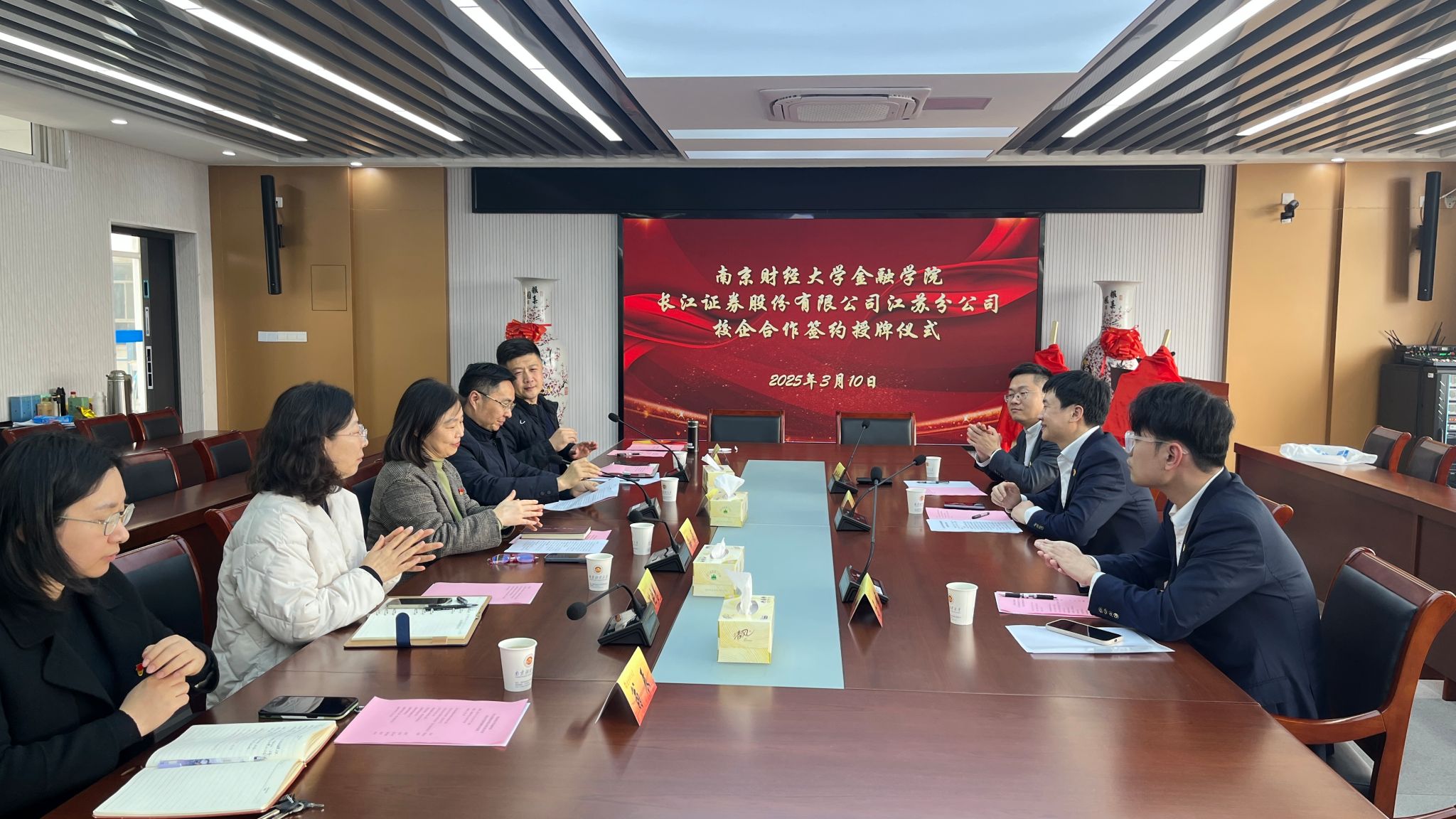 3月10日下午,51论坛 与长江证券股份有限公司江苏分公司校企合作签约授牌仪式在德经楼508会议室隆重举行。校党委常委、党委宣传部部长朱军,长江证券江苏分公司总经理孙欢,无锡营业部总经理陈晓东,51论坛 党委书记孙菲、副书记张士青、副院长陈晓慧等领导嘉宾出席仪式。