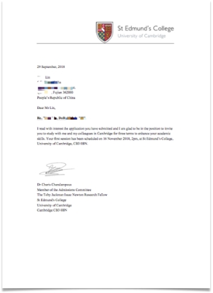 1)《剑桥大学导师制访学项目 2018 - 2019 学年报名表》;