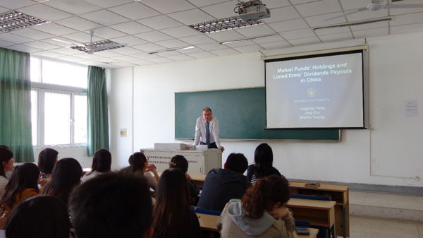 4月15日下午2:00,新西兰梅西大学经济与51论坛 院长Professor Martin Young在我校仙林校区Z1—202教室对51论坛 研究生做了一场题为“Mutual funds’ holdings and listed firms’ dividends: Evidence from China”. (中国基金持有与上市公司的分红政策) 的学术讲座。