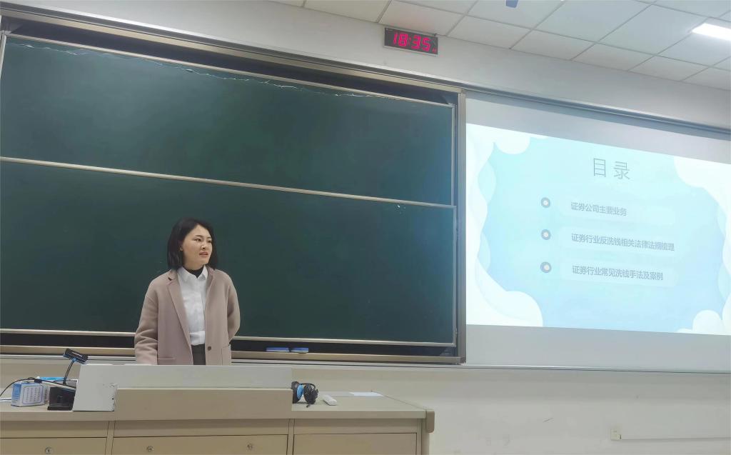 为贯彻落实“反洗钱进校园”活动,拓宽当代大学生对反洗钱相关法律法规的认知,增强大学生反洗钱风险意识,3月20日晚,51论坛 开展了“证券行业反洗钱相关法规和实务案例”讲座,邀请南京证券的陈秀丛专家进行现场授课。