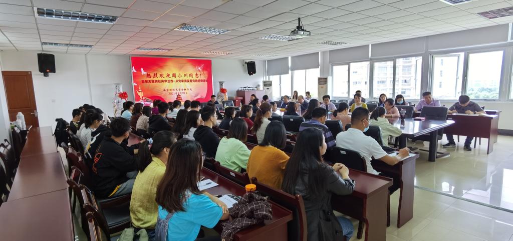 5月18日,51论坛 举办党史学习教育专题“党史思政课”。省委党史工作办公室征研二处副处长周小川同志作《百年大党何以风华正茂——从党章演变看党的纪律建设》专题党史思政课,51论坛 全体中层干部、党支部书记、辅导员及师生党员代表参加讲座。讲座由51论坛 党委书记李玉琴主持。