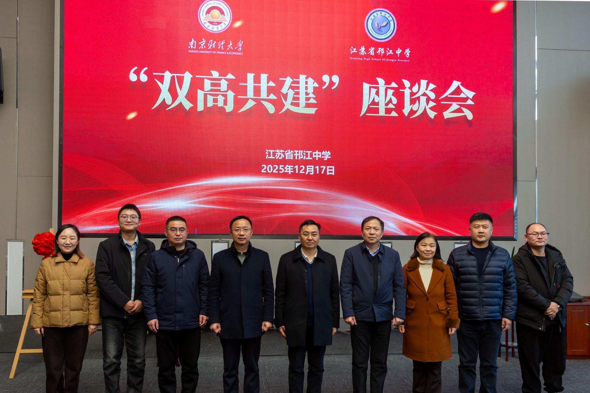 随后,朱军部长一行前往江苏省邗江中学参加“双高共建”座谈会。会上,朱军部长结合我校办学实际,分享了在人才培养、专业建设、师资培育等方面的经验。双方就“双高计划”实施中的难点、校际资源共建共享等议题展开深入交流。未来将以“双高共建”为依托,加强资源整合与优势互补,在人才培养、社会服务等领域开展更深层次合作,共同打造区域高等教育与产业发展融合共生的新格局。最后,我校向邗江中学“红石榴家园”捐赠一批图书,协助共建校园图书角。