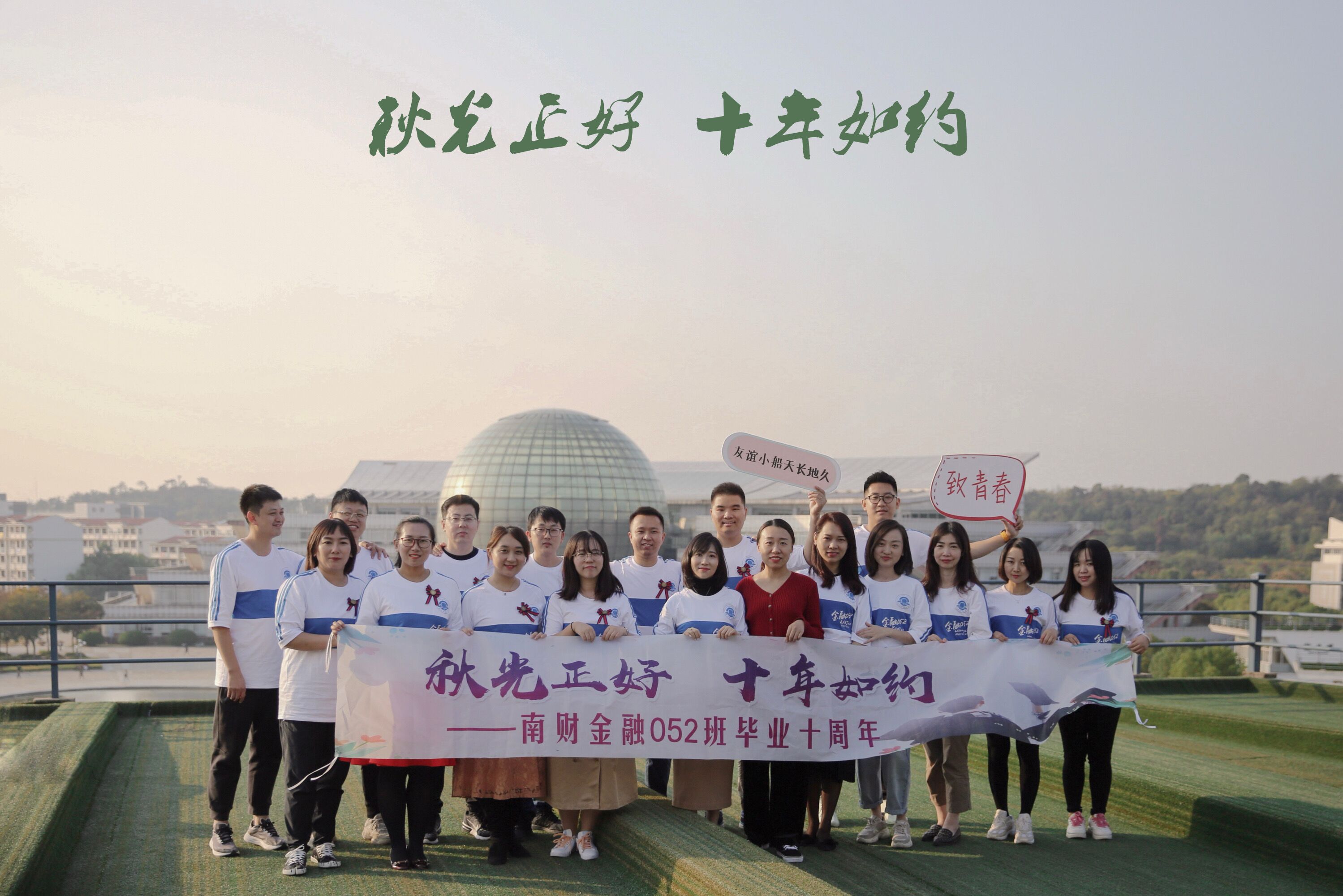 随后,校友们一同前往五楼草坪集体合影留念,留下十年再聚的回忆。合影后师生一起参观了图书馆的校史展览馆,面对十年的变化,校友们纷纷发出岁月如梭的感慨,并约定下一个十年再相聚。